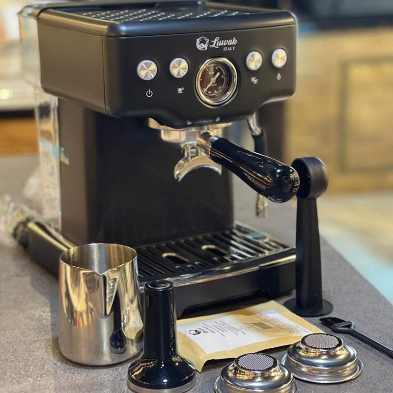 پرتافیلتر معمولی و نیکد - تمپر فلزی - پیچر 350 لواک - 2 عدد بسکت تک و 2 عدد دوبل غیر تحت فشار - فرچه نظافت - پیمانه - 50 گرم پودر شستشو -